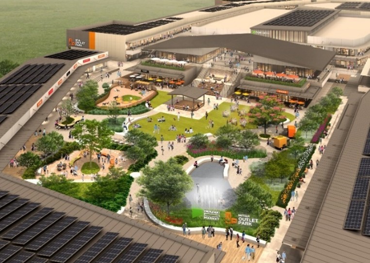施設は「アウトレットゾーン(157店舗)」と「OKAZAKI MARKET(23店舗)」の2エリアで構成される。後者は約4,200㎡の緑地広場を中心に、飲食・生鮮・雑貨・ペット関連店舗が並ぶ公園型施設。ステージ、遊具、噴水、水景、ドッグランなどが整備され、夕方には光・音・水が連動するショー「MAGIC HOUR」も開催予定。買う・食べる・遊ぶ・憩うが融合した空間は、ファミリーやペット連れにも配慮された設計となっている。