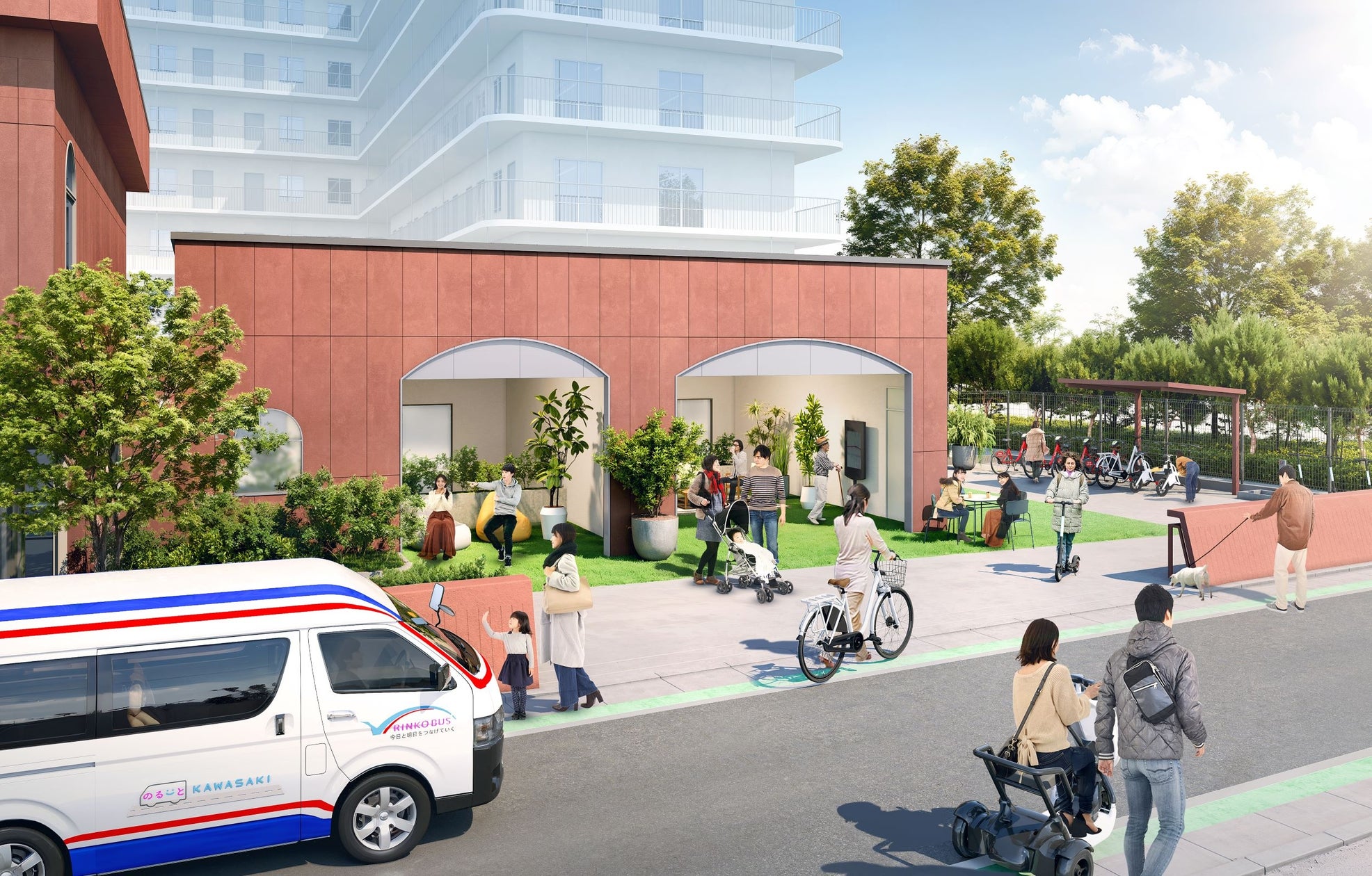 このハブでは、AIによるオンデマンド交通「のるーとKAWASAKI」を中心に、シェアサイクル、電動キックボード、バス停情報など多様な移動手段が一体的に提供される。利用者は専用アプリ、LINE、電話などで事前予約が可能で、施設前面には停留所も設置されている。