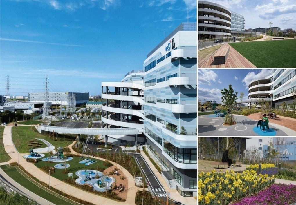 敷地内には「高台広場(あおぞら広場)」「わくわく広場」「はなの広場」といった開かれた空間が設けられ、地域住民の憩いの場としても機能。物流施設でありながら、都市と人をつなぐ新たな拠点としての可能性を示しています。