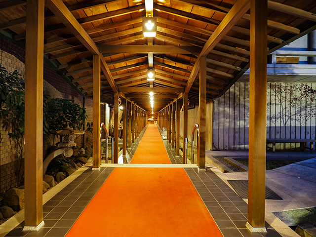 宝物殿の脇か中を通っている通路で、赤の絨毯がひかれていて、木造の屋根も印象的でしたね。