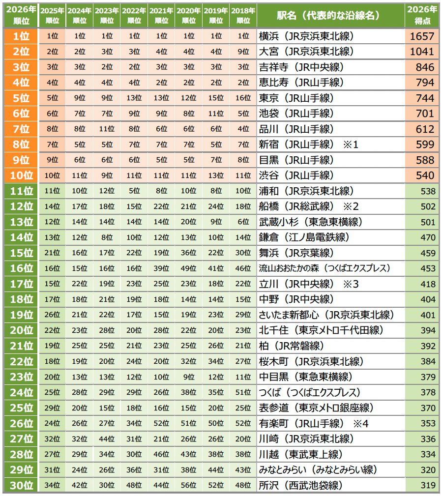 リクルートより「SUUMO住みたい街ランキング2026 首都圏版」が発表されました。