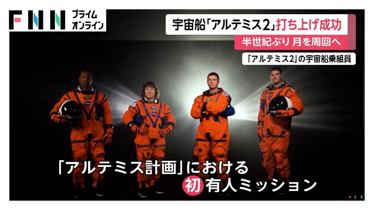 「アルテミス2」打ち上げ成功 アポロ以来半世紀ぶりの快挙 4人の宇宙飛行士が月周回ミッションへ(2026年04月02日)(youtube/FNNプライムオンライン)