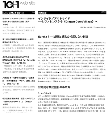 稲垣淳哉氏(建築家/Eureka共同主宰)による「インサイド/アウトサイド─レファレンスから《Dragon Court Village》へ」という記事が、10+1 web siteに掲載されています。