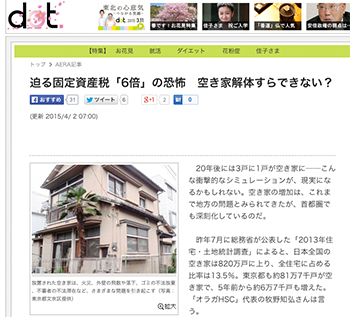 「迫る固定資産税「6倍」の恐怖 空き家解体すらできない?」というAERA2015年3月30日号に掲載された記事が、dot.ドットに掲載されています。