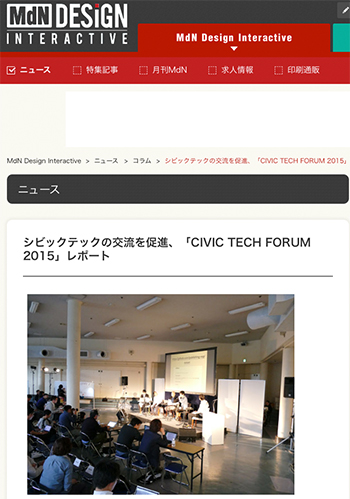 3月29日に、東京・千代田区の科学技術館にて開催された「CIVIC TECH FORUM 2015」に関するレポート記事がMdN Design Interactiveに掲載されています。