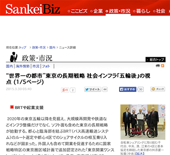 「“世界一の都市”東京の長期戦略 社会インフラ「五輪後」の視点」という記事が、SankeiBizに掲載されています。