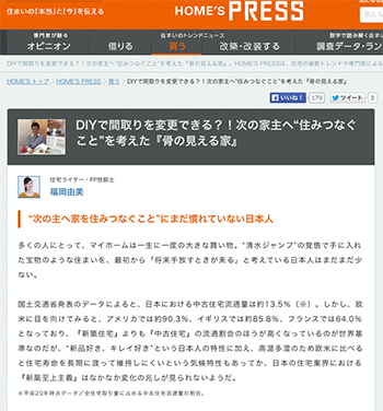 2014年グッドデザイン賞を受賞したロイヤルハウス株式会社の『骨の見える家』を紹介している記事が、HOME’S PRESSに掲載されています。