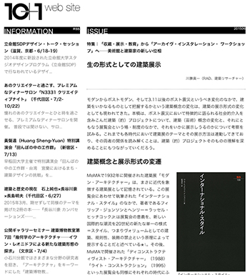 川勝真一氏(RAD、建築リサーチャー)による「生の形式としての建築展示」という記事が、10+1 web siteに掲載されています。