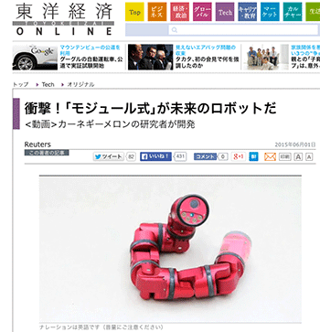 カーネギーメロン大学のある研究チームが開発中の組み立てが容易なモジュラーロボットを紹介している記事が、東洋経済オンラインに掲載されています。