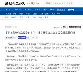 →『25年後の東京どうする? 椎名林檎さんらと30日意見交換』