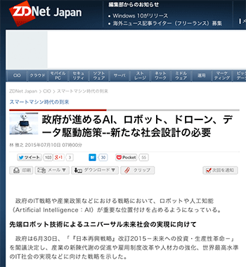 政府が進めるAI、ロボット、ドローン、データ駆動施策–新たな社会設計の必要 (ZDNet Japan)