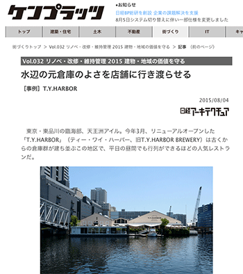 東京の臨海部、天王洲アイルにあるリニューアルオープンした「T.Y.HARBOR」の事例を紹介している記事が、ケンプラッツに掲載されています。