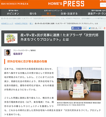 「産×学×官×民が見事に連携!たまプラーザ「次世代郊外まちづくりプロジェクト」とは」という次世代郊外まちづくりの企画運営を担当する東急電鉄の岡本洋子氏に話を聞いたという記事が、HOME’S PRESSに掲載されています。