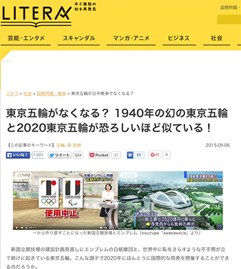 都市イベント・構想「東京五輪がなくなる? 1940年の幻の東京五輪と2020東京五輪が恐ろしいほど似ている!」というオリンピック関連の記事が、LITERAに掲載されています。