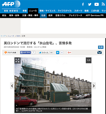 「英ロンドンで流行する「氷山住宅」、苦情多発」というロンドンでの地下室増築問題に関する記事が、AFPBB Newsに掲載されています。