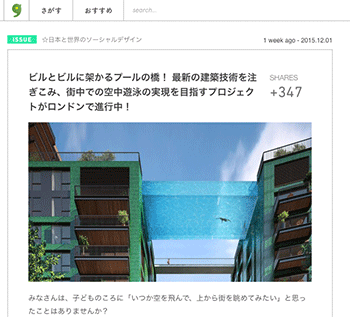 「ビルとビルに架かるプールの橋! 最新の建築技術を注ぎこみ、街中での空中遊泳の実現を目指すプロジェクトがロンドンで進行中!」というロンドンでの事例を紹介している記事が、グリーンズに掲載されています。