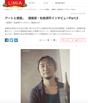 建築建築家の松島潤平氏へのインタビュー記事が、LIMIAに掲載されています。