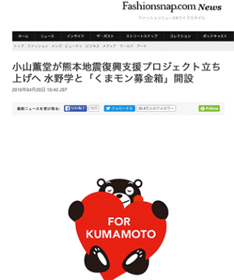 →『小山薫堂が熊本地震復興支援プロジェクト立ち上げへ 水野学と「くまモン募金箱」開設』
