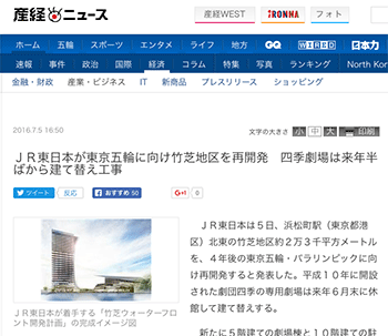 →『JR東日本が東京五輪に向け竹芝地区を再開発 四季劇場は来年半ばから建て替え工事』