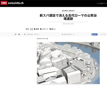 まちづくり「新スパ建設で消える古代ローマの公衆浴場遺跡」というスイスのアールガウ州バーデン市での建設事業と遺跡保存に関するニュースを取り上げている記事が、SWI swissinfoに掲載されています。