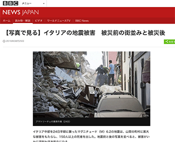 都市防災イタリア中部で、24日におこった大地震の各地の被害状況を伝えている記事が、BBCニュースに掲載されています。