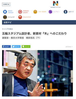 隈研吾氏へのインタビュー記事が、NIKKEI STYLEに掲載されています。