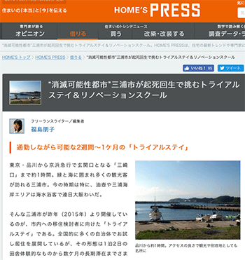 地域活動「“消滅可能性都市”三浦市が起死回生で挑むトライアルステイ&リノベーションスクール」という神奈川県、三浦市の取り組みについて取り上げている記事が、HOME’S PRESSに掲載されています。