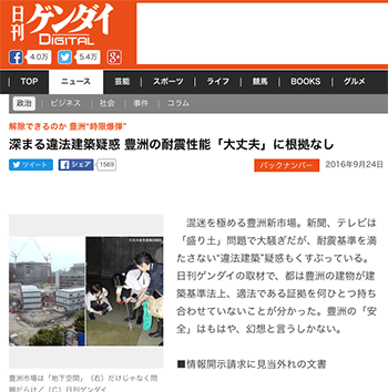 「深まる違法建築疑惑 豊洲の耐震性能「大丈夫」に根拠なし」という豊洲市場問題について取り上げている記事が、日刊ゲンダイDIGITALに掲載されています。