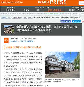 まちづくり「登録有形文化財は地域の財産。ますます期待される建造物の活用と今後の課題点」という記事が、HOME’S PRESSに掲載されています。
