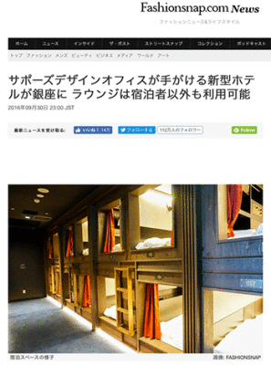 →『サポーズデザインオフィスが手がける新型ホテルが銀座に ラウンジは宿泊者以外も利用可能』