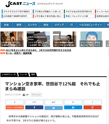 まちづくり「マンション空き家率、世田谷で12%超 それでも止まらぬ建設」という記事が、J-CASTニュースに掲載されています。
