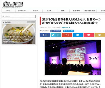 「消え行く地方都市を救え!劣化しない、世界で一つだけの”まちづくり”を探る『まちてん』取材レポート」という渋谷え開催されたまちてん・地方創生まちづくりフォーラムについてレポートしている記事が、ガジェット通信に掲載されています。