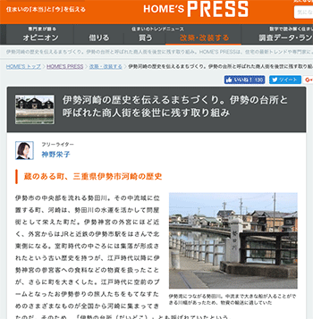 まちづくり「伊勢河崎の歴史を伝えるまちづくり。伊勢の台所と呼ばれた商人街を後世に残す取り組み」という三重県伊勢市での取り組みについて取材している記事が、HOME’S PRESSに掲載されています。