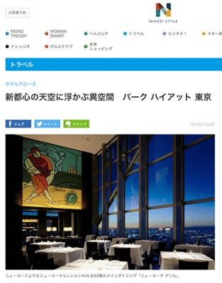 アラカルト「新都心の天空に浮かぶ異空間 パーク ハイアット 東京」という記事が、NIKKEI STYLEに掲載されています。