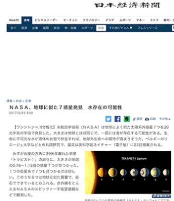 →『NASA、地球に似た7惑星発見 水存在の可能性 』