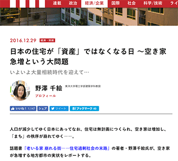 →『日本の住宅が「資産」ではなくなる日 〜空き家急増という大問題 』