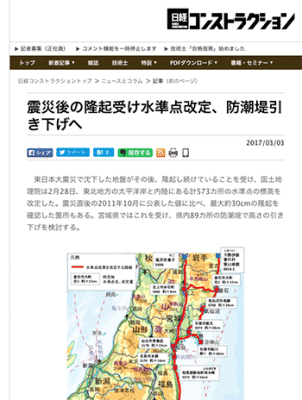 →『震災後の隆起受け水準点改定、防潮堤引き下げへ 』
