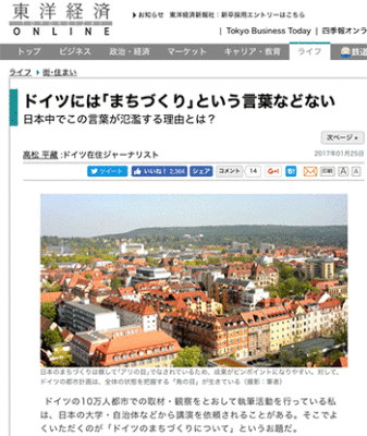 「ドイツには「まちづくり」という言葉などない」という高松平藏氏による記事が、東洋経済オンラインに掲載されています。