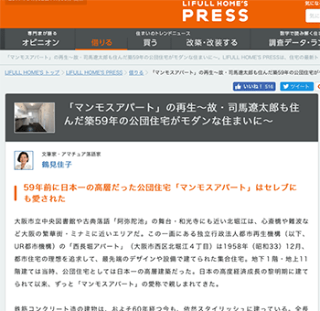 大阪の「西長堀アパート」について取り上げている記事「「マンモスアパート」の再生~故・司馬遼太郎も住んだ築59年の公団住宅がモダンな住まいに~ 」が、LIFULL HOME’S PRESSに掲載されています。