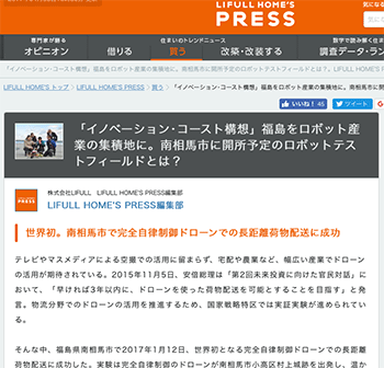 ロボット&ドローン福島県で進められている「イノベーション・コースト構想」について、南相馬市役所の方に話を聞いている記事が、LIFULL HOME’S PRESSに掲載されています。