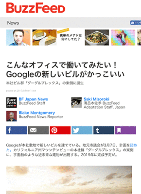 「こんなオフィスで働いてみたい! Googleの新しいビルがかっこいい」という本社ビル群グーグルプレックスについて取り上げている記事が、buzzfeedに掲載されています。