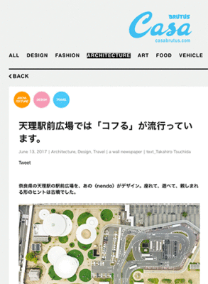 まちづくり佐藤オオキ氏デザインによる奈良県天理駅の「天理駅前広場コフフン」について取り上げている記事が、カーサ ブルータスに掲載されています。