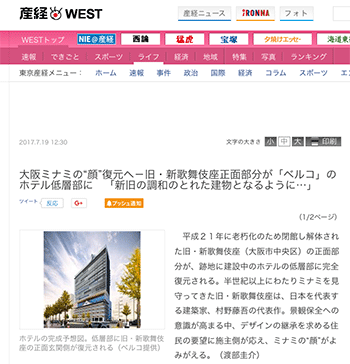 →『大阪ミナミの“顔”復元へ-旧・新歌舞伎座正面部分が「ベルコ」のホテル低層部に 「新旧の調和のとれた建物となるように…」』