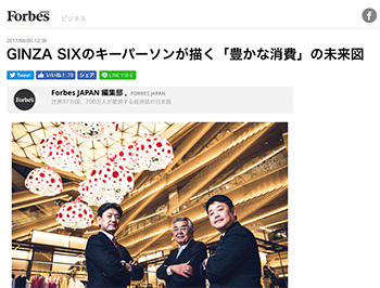「GINZA SIXのキーパーソンが描く「豊かな消費」の未来図」という記事が、 Forbes JAPANに掲載されています。