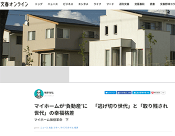 「マイホームが“負動産”に 「逃げ切り世代」と「取り残され世代」の幸福格差」という牧野知弘氏による記事が、文春オンラインに掲載されています。