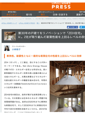 「築30年の戸建てをリノベーションで「ZEH住宅」に。2社が取り組んだ新築性能を上回るレベルの改修」という記事が、LIFULL HOME’S PRESSに掲載されています。