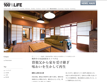 まちづくり「戦時中の木造家屋をリノベする 曽祖父から家を受け継ぎ味わいを生かして再生 」という記事が、100%LiFEに掲載されています。