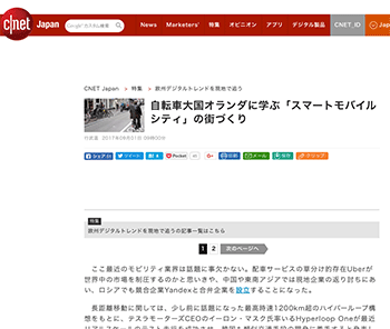まちづくり「自転車大国オランダに学ぶ「スマートモバイルシティ」の街づくり」という記事が、CNET Japanに掲載されています。