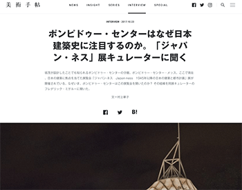 建築「ポンピドゥー・センターはなぜ日本建築史に注目するのか。「ジャパン・ネス」展キュレーターに聞く」という同展キュレーターのフレデリック・ミゲルー氏に話を聞いている記事が、美術手帖に掲載されています。