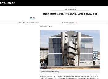 スポンサーリンク 日本人建築家が設計、オメガの新しい製造拠点が登場 / 坂茂 (swissinfo.ch) 建築 2017.11.082025.10.08 坂茂設計によるスイス西部にあるベルン州ビール市にできたオメガの新しい製造拠点について取り上げている記事が、swissinfo.chに掲載されています。 →『日本人建築家が設計、オメガの新しい製造拠点が登場 』